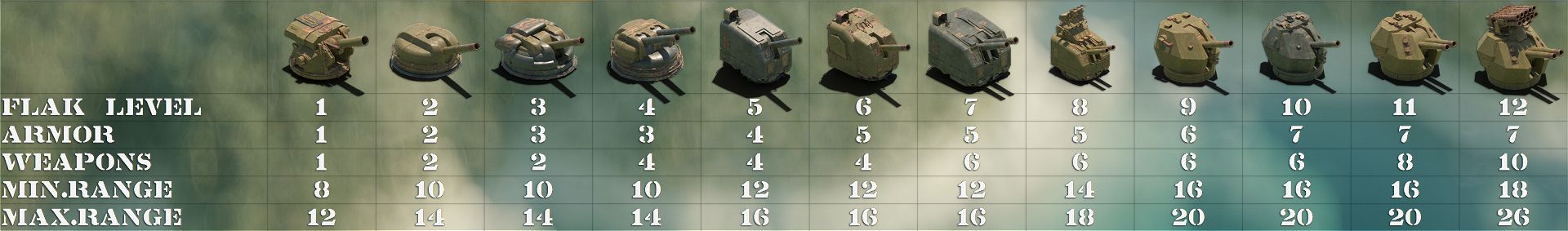 Panzer Quest Play the Game | . Base Defense: Can only be built around the entrance of a base and can fire at both ground and air units. It cannot move. Flaks have an extremely strong armor. The more units shoots at it, the less effective each individual shot will be. Example: 100 M12 howitzers do 3 times as much damage as 10 M12 howitzers. ![]() (Min range means the weapon range on non-firing enemies, the max range on currently firing enemies) Tanks / ground vehicles: ![]() Have the advantage of being able to drive everywhere on the map except obstacles such as bases, rivers, mountains etc.If they have no Antiair weapons, they are defenseless against air units. They can leave the map via highways (who are in the middle of each map edge) to get to other maps. Air units (Helicopters, airplanes and airships): ![]() ![]() Can navigate anywhere on the map, overfly obstacles and travel fast. They can shoot tanks, boats and trains (that do not have antiair weapons can) without that they can shoot back to the air units.Air Units can leave the map via highways (are in the middle of each map edge) to get to other maps. Aircraft carrier: ![]() Send airunits (aircraft and helicopters) to different maps - Click on the spinning radar of the aircraft carrier to send it troops - Gold price depends on how many times you used the aircraft carrier per day and if you have bases on the target map - Up to 5 air units can fly in on a map without a base (provided you are not over your group limit und military limit on all other maps added together, so it is not possible to park 5 planes on many maps without maintain the group limit and mp limit) |